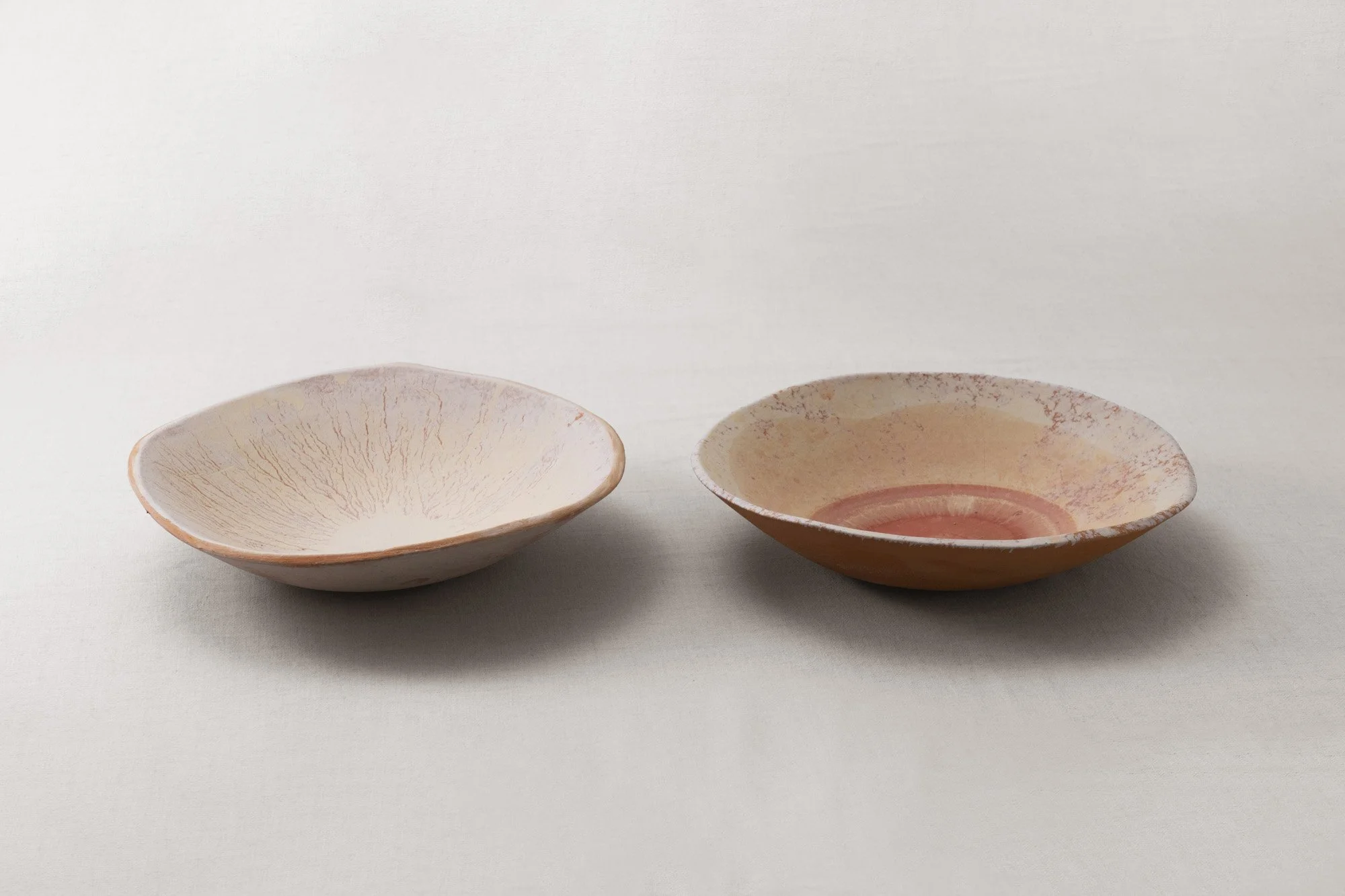 Lokal rå leire (NO/DK), begitning av tynnslammet leire, elektrisk brent ved 980 °C.