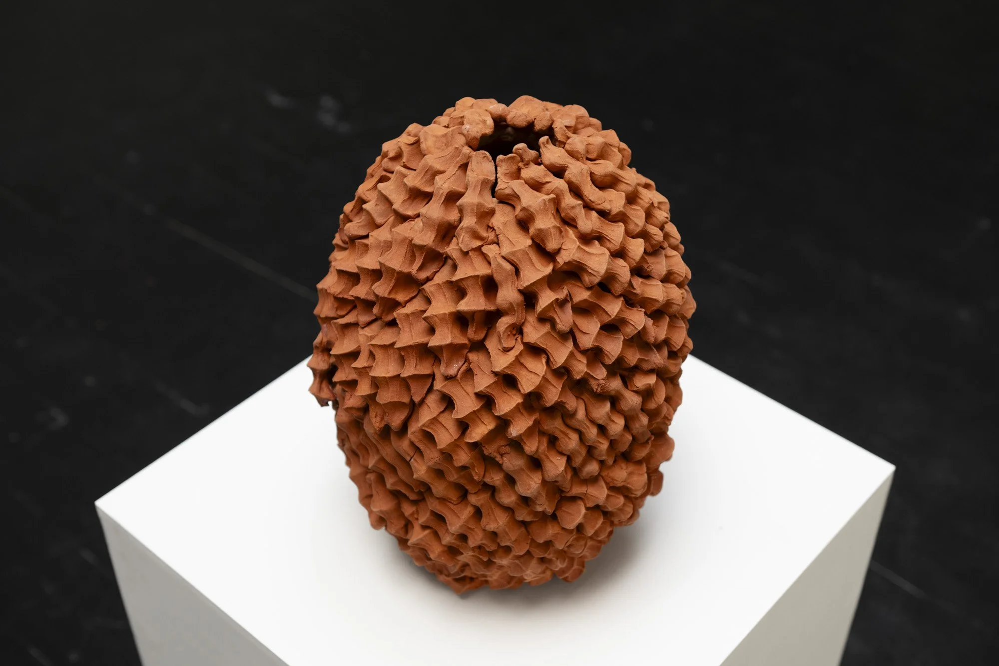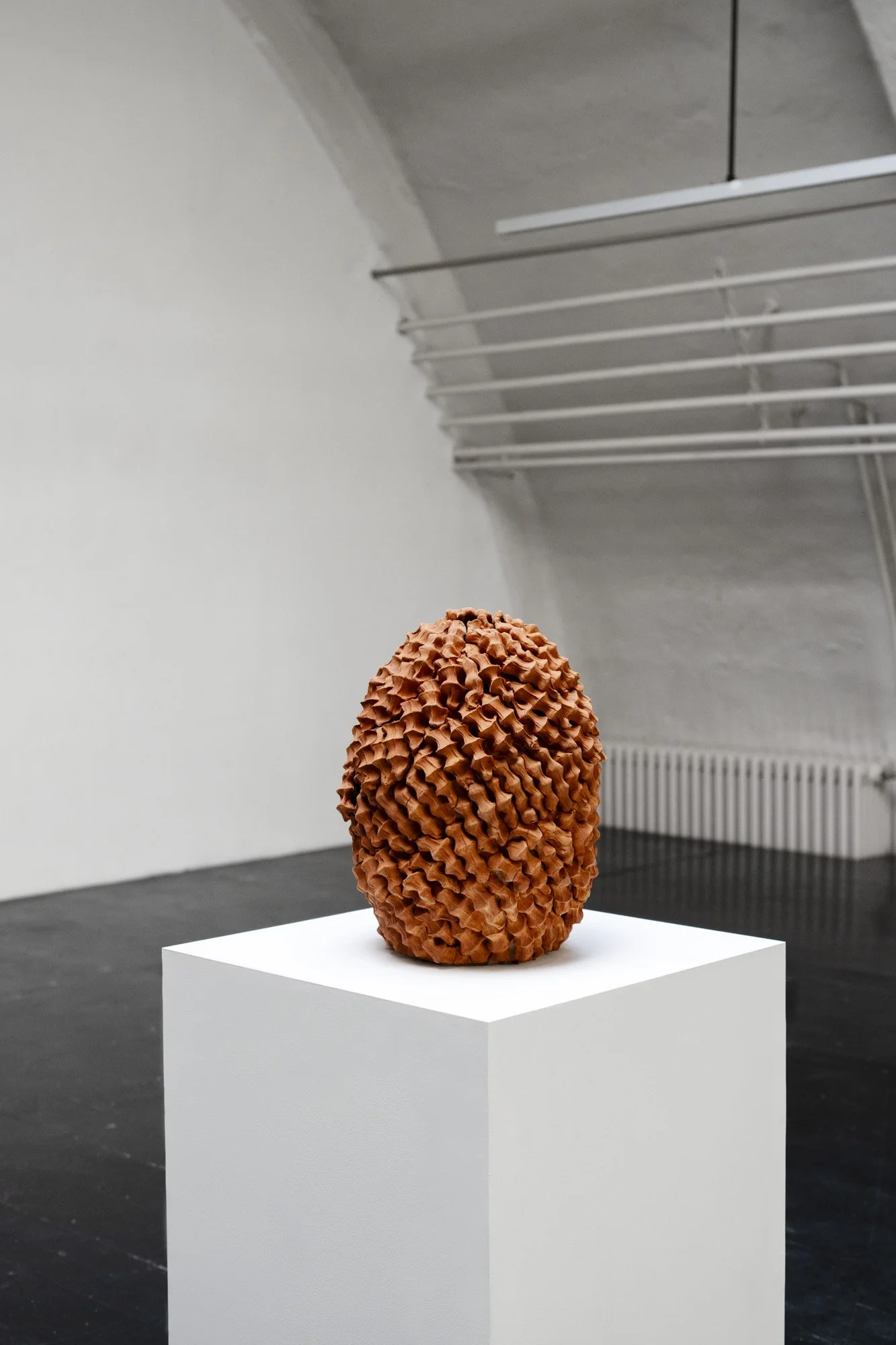 Verket er utviklet gjennom systematisk repetisjon av et håndformet element som bygger et samlet, kompakt volum. Tetthet og lagvis oppbygging bærer strukturen. Utviklet under legatopphold ved Guldagergaard International Ceramic Research Center.