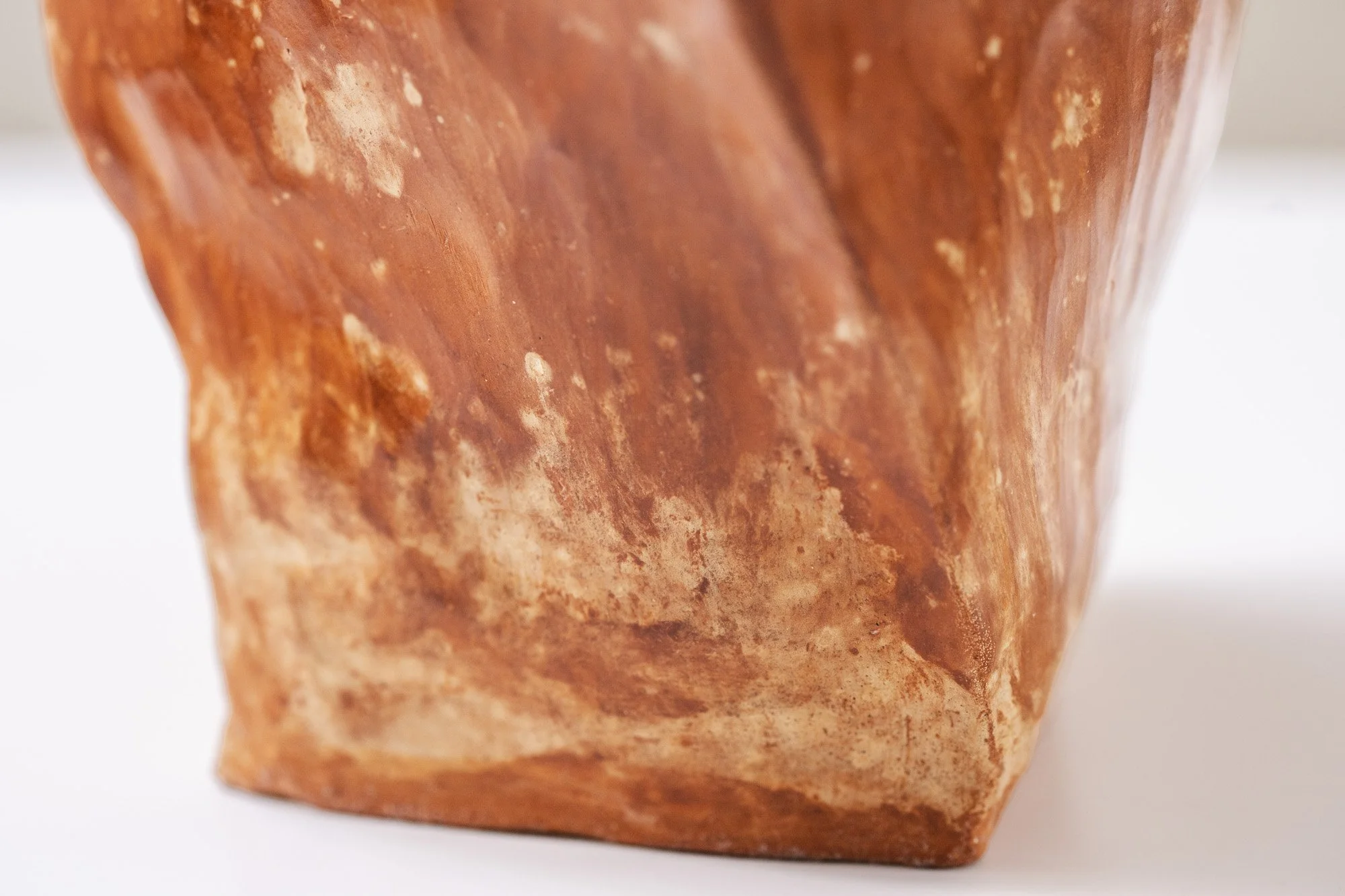Vill leire (Asker) med chamotte av vill leire. Håndbygget, burnished, innsatt med bivoks og linolje. Brent til 980 °C.