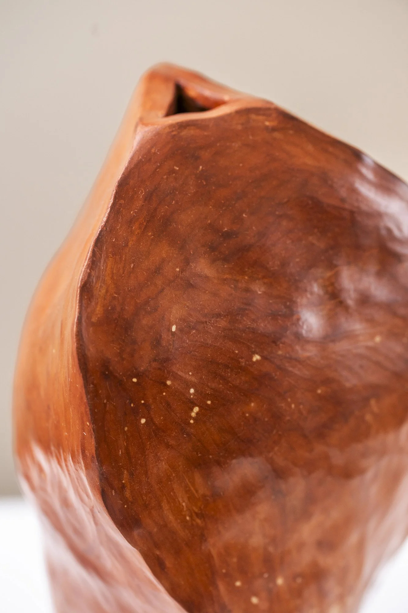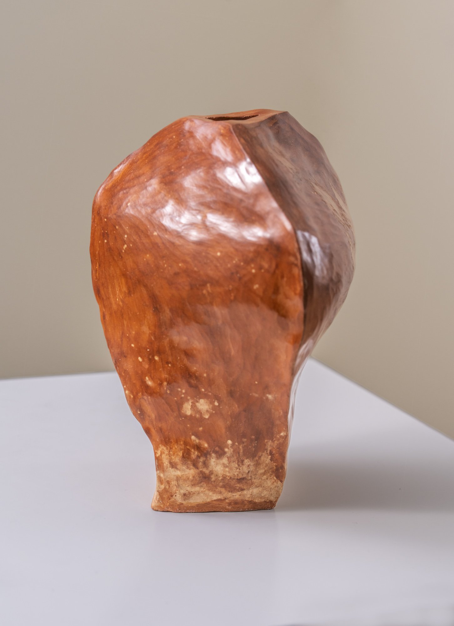 Villform I er utviklet gjennom lagvise kompresjoner som skaper en form med et stille indre trykk. Overflaten, forseglet gjennom burnishing og voks, fremhever hvordan villeirens mineralitet reagerer på rytme, varme og berøring. Formen bærer spor av hydrologiske impulser –forskyvning, sakte strøm og oppbygget motstand – som i dette verket foldes inn i et volum som kan fremstå både konsentrert og urolig. Verket undersøker hvordan en keramisk form kan holde på en følelse av organisk bevegelse, som om materialet fortsatt responderer på kreftene som skapte det.